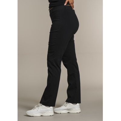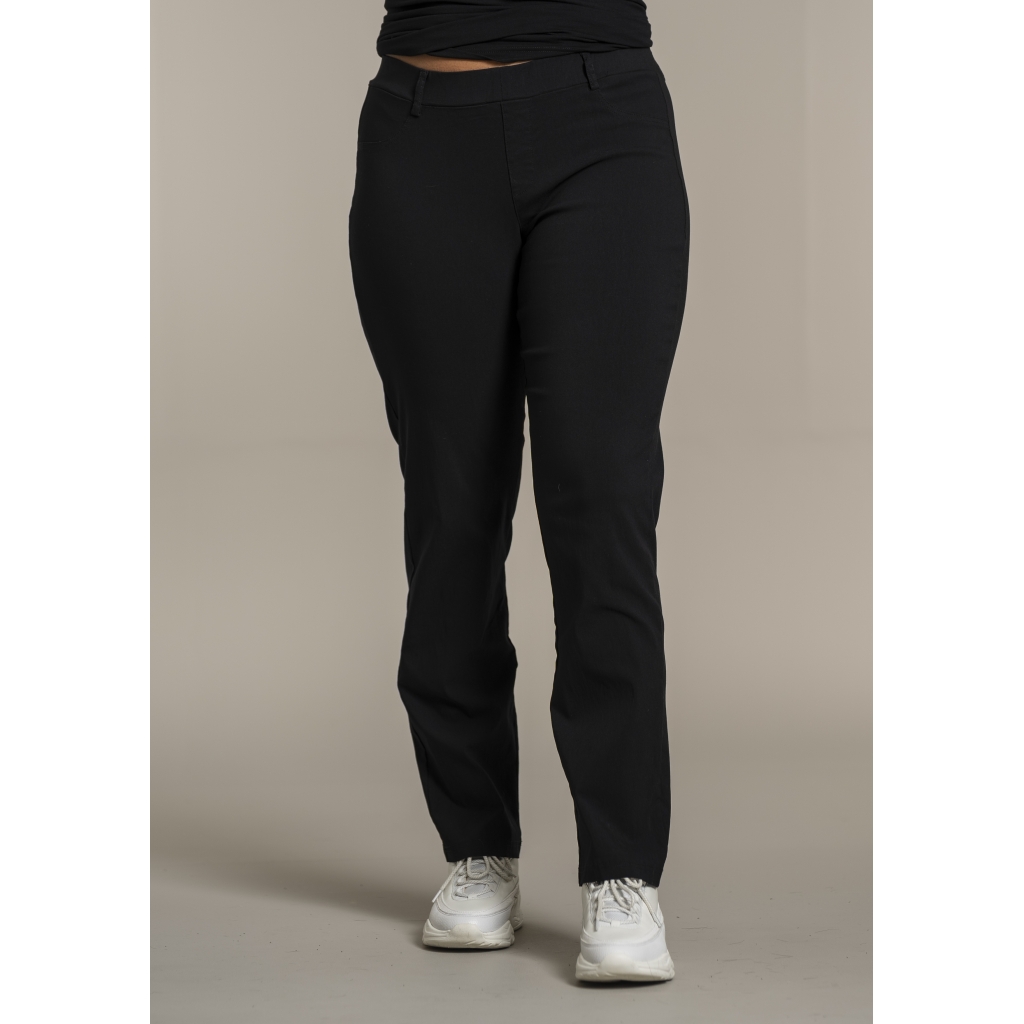 Klassisk byxa i rak,vidare modell. Elastisk midja med bältesöglor. Fuskfickor fram