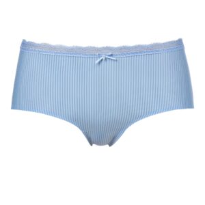 Laila miditrosa med spets är en mycket populär trosa. Skönt och tunt randigt jacquardtyg med mjuk spets, rosett med pärlor i midjan. Väldigt stretchigt material. Trosan matchar Laila bygel-bh ljusblå