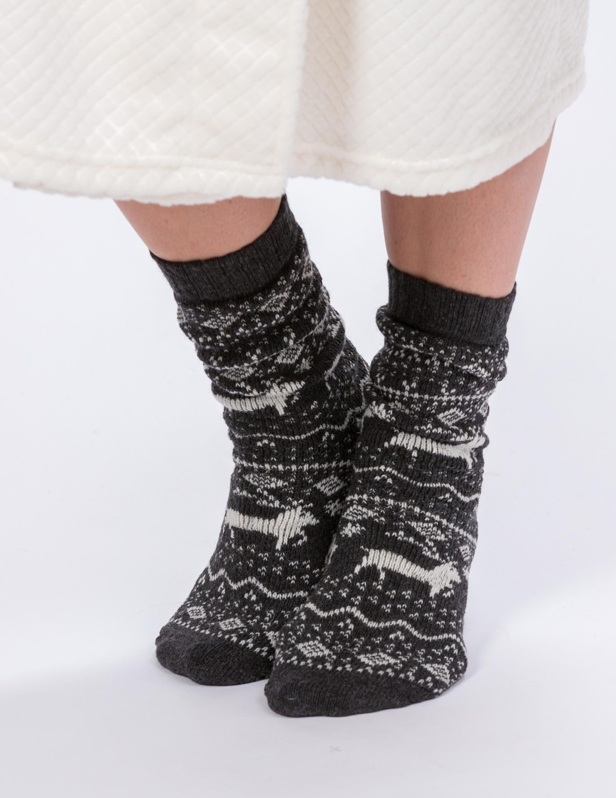 Mysig socka i ull. Härligt fint mönster. Insidan av sockan är i skön frotté.