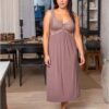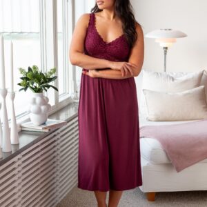 Nattlinne i mjuk och skön viskostrikå av Lenzing EcoVero som är producerad på ett mer miljömässigt, hållbart sätt. Överdel i dekorativ, elastisk spets. Bysten är fodrad, medan spetsen baktill och under byst är ofodrad. Justerbara axelband. Längd: 115 cm i stl M