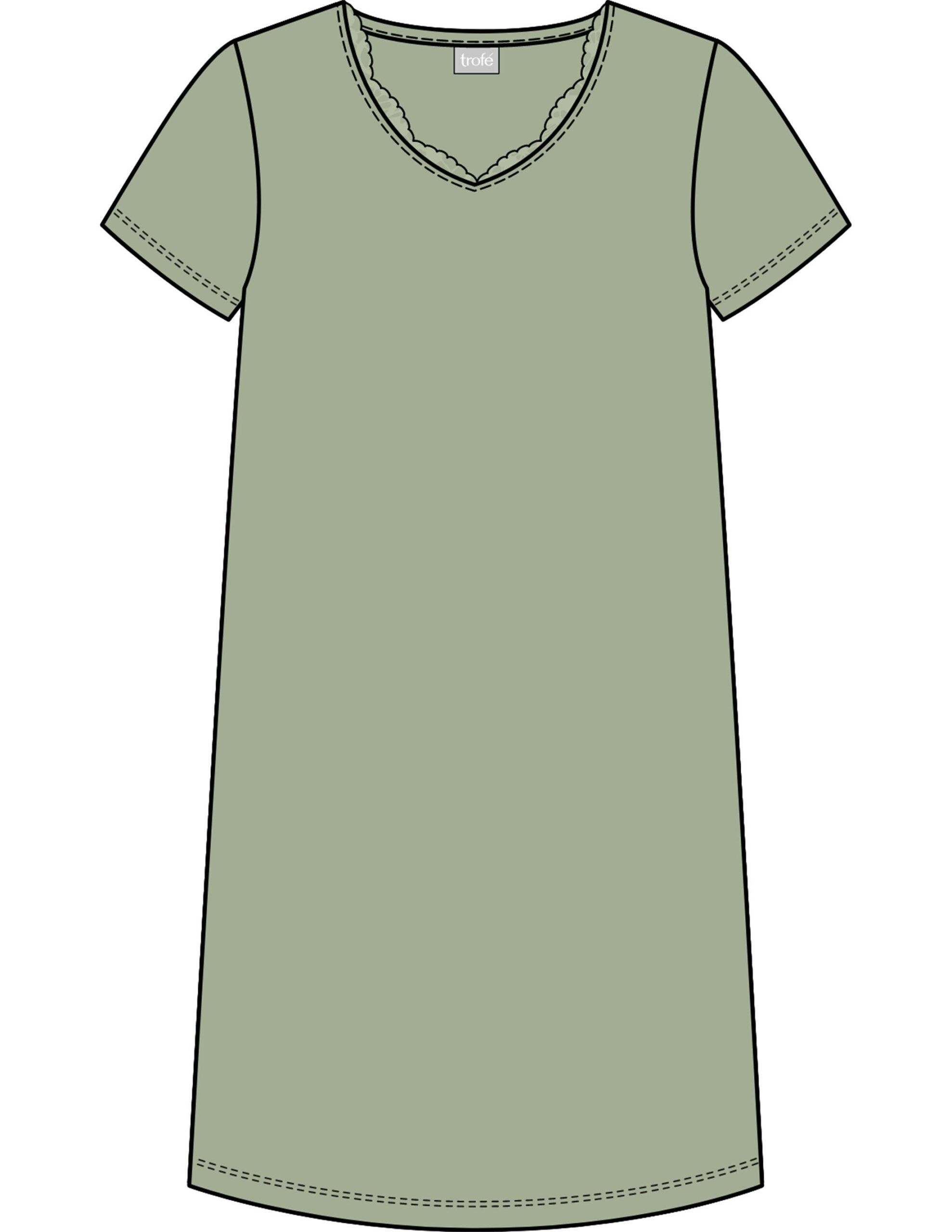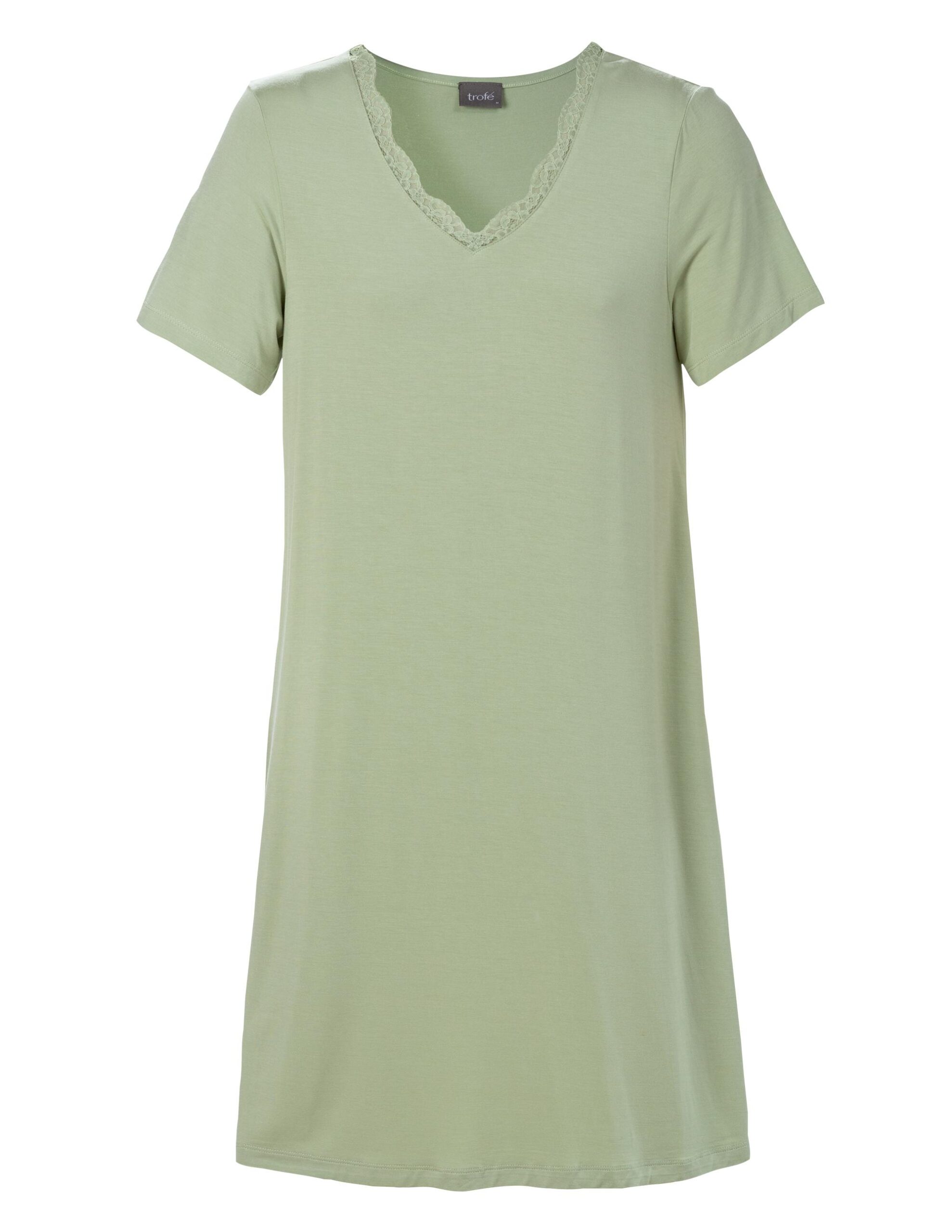 Kortärmat nattlinne i härligt mjuk viskostrikå av Lenzing EcoVero som är producerad på ett mer miljömässigt, hållbart sätt. V-formad halsringning med fin, mjuk spetskant framtill. Längd: 95 cm i stl M